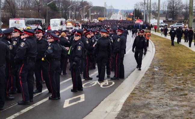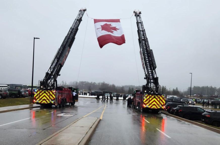Members of the County of Brant Fire Department, Paris Station, attended OPP Constable Grzegorz Pierzchala’s funeral on January 4, 2023 In a social media post this week, the Paris Firefighter’s Club stated they attended the funeral “to honour the life and sacrifice of fallen OPP Constable Grzegorz Pierzchala. A fitting tribute for an Officer taken far too soon. We stand in support of his family, friends and colleagues. Rest in Peace Constable Pierzchala.” The station is also lit up in blue in solidarity of all OPP officers who are mourning the loss of one of their own