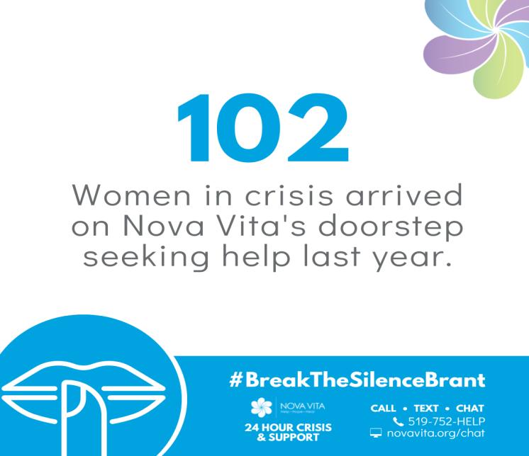“The more you share this campaign, the more awareness it brings to essential support services like our 24 hour Crisis & Support Line that offers call, text and chat options at 519 752 HELP or www.novavita.org/chat. People in abusive relationships may not be able to connect with Nova Vita safely, so your participation in #BreakTheSilenceBrant could save a life,” says Jessica Powless, Public Education and Special Events Coordinator Join the campaign, make a difference, and help Nova Vita Break the Silence on Domestic Violence during Woman Abuse Prevention Month: 1. Register at novavita.org. In solidarity for women who are living in silence, we challenge you to go silent for 24 hours on November 24 to raise