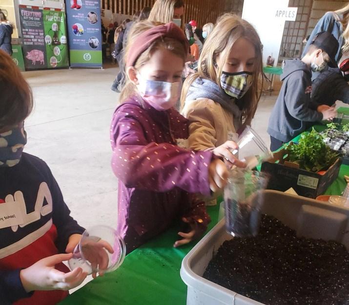 Bite of Brant received provincial accolades recently for outstanding volunteerism. Pictured above, Evan, Charlotte and Morgan planting basil and tomato seeds at the garden station at last year’s event. Below, a volunteer shows the kids how to trim an apple, demonstrated by Hudson. Bite of Brant was the 2019 recipient of the Champion Award presented annually by Farm and Food Care Ontario to recognize individuals or groups for their significant commitment to public outreach and support for the province’s farming community. Photo credit ALISON HARRISON
