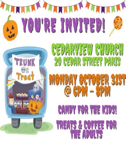 October 28, 6:30 pm to 8 pm at St. Paul’s United Church. Snacks, games, stories and costumes encouraged. Everyone is welcome to attend.