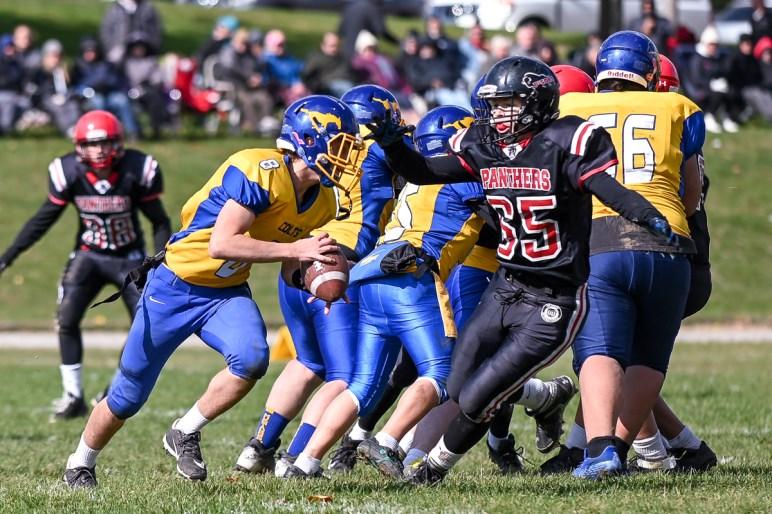 AABHN Senior Football - Paris Panthers vs BCI MUSTANGS – Paris - After lunch it’s time for the Sr. Panthers to show the Mustangs why they are having a record season! It will be the Panthers that dominated the field as QB Jack Kelly scores over and over again This gave the Panthers a solid lead and ended the game with a record breaking 4th win for Paris! Final Score: SR. PANTHERS 32 – SR. MUSTANGS 6 All photos by Michelle Malvaso