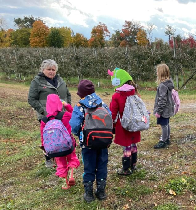 The 5th Paris Brownies were on a field trip last Saturday to Brantview Farm to learn the ins and outs of apple farming! Brantview is a family operated farm that takes pride in providing fresh apples for the community. Their farming operation has evolved from dairy, cash crops and apples to focussing solely on its orchard. The farm also includes a Scratch Bakery, Cidery, U Pick opportunities and beautiful storefront. In 2021 the Howell family celebrated its 200th harvest! This generational farm has a huge community outreach, participating in a wide variety of community activities from the Paris Fair to the St George Applefest Pictured with the Brownies is Linda Howell talking about the 14,000 trees they have and how each are pruned by hand every spring. Farmer Dan explains the proper way to pick an apple ‘Eye to the Sky,’ he says, so the whole stem is removed, making way for a new apple next year.