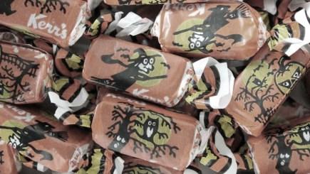At the end of WW2 Kerr’s introduced a molasses candy wrapped in orange and black that was only available in Canada and only for Hallowe’en No one seems to ever like them, but they mysteriously sell out of stores every year…Canada’s love hate relationship with this 76 year old candy is an endearing seasonal confection: The Kerr’s Molasses Candy Kiss! which may be mistakenly hated due to the fact that other companies have marketed similar molasses candies of lesser quality. Those that
