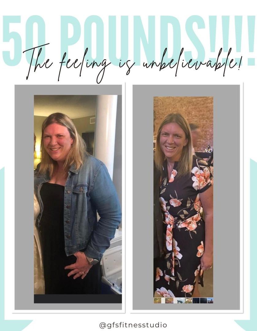 The transformation is not only outstanding in her pictures but in her life. If you are a friend of hers on Facebook, you will see all the adventures she is now taking part in with her family and her class. The sky is truly the limit for her as nothing is stopping her from living her life to the very fullest And the best part is....she is now a certified nutrition coach and is joining the GFS staff this November!