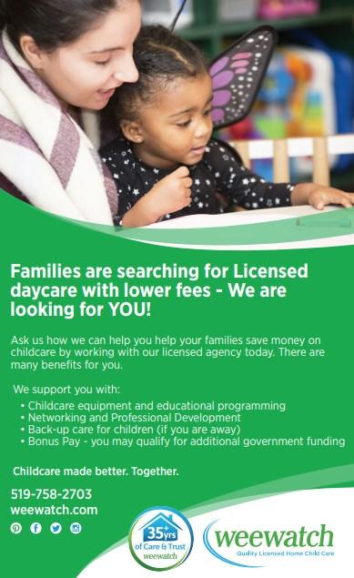 Pappert said Wee Watch understands that compensation is important to attract more providers to a licensed agency, so the organization is offering additional financial supports to existing providers and financial incentives to onboarding new providers.