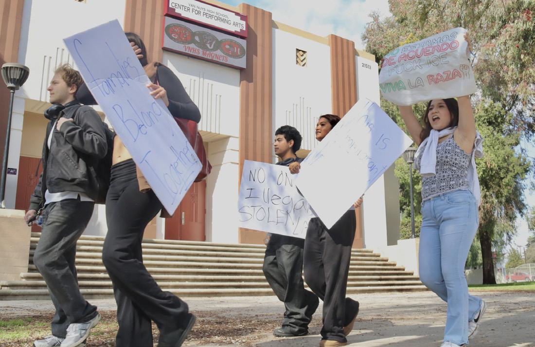 Following the Trump Administration’s crackdown on immigration, many students took to the streets to protest for immigrants’ rights. The walkout occurred on Feb. 10 and included students from multiple schools, including Lancaster High School, Reseda Charter High School, Birmingham Community Charter High School and Magnolia Science Academy. The protest was one of many across the Los Angeles area.