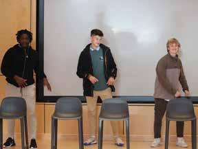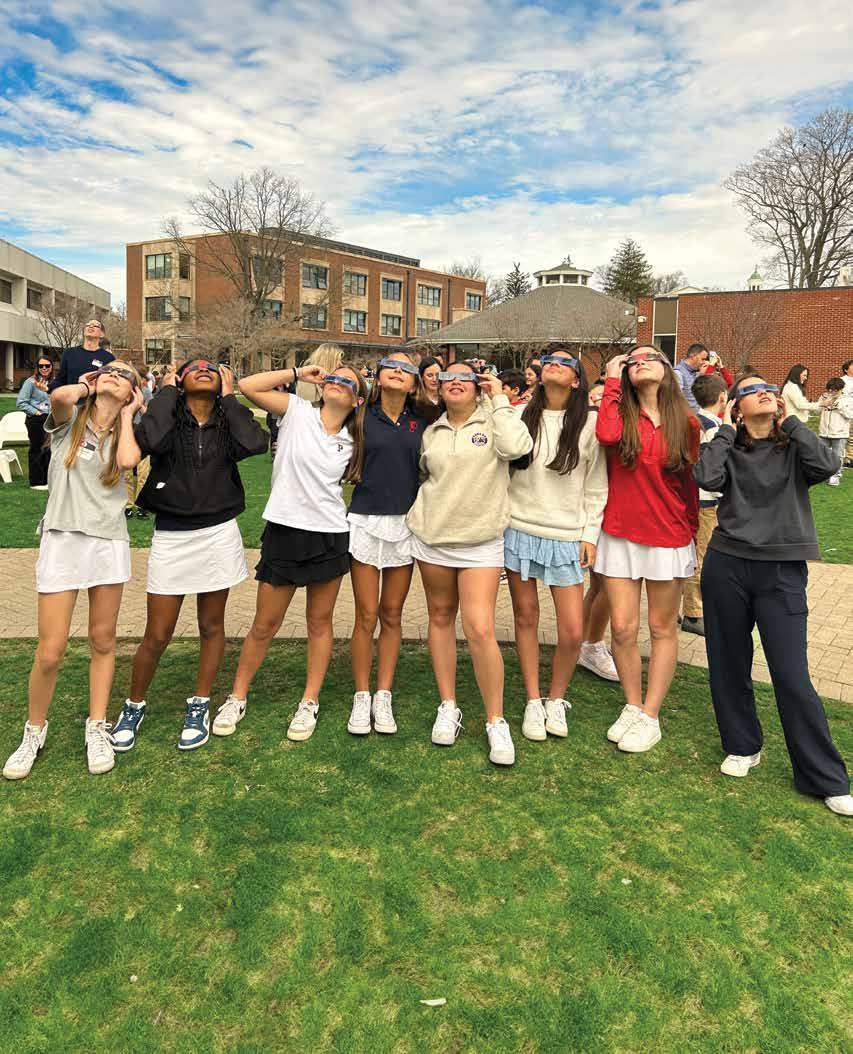 Cassidy Zelt ’24 and Gabrielle Hall ’25. For each game, students selected class champions to compete in contests of skill involving jump ropes, balloons, and hula hoops, as well as a trivia portion which tested each team’s knowledge of popular music. Heading into the final event— tug-of-war—the senior class had a narrow lead, but in the end the junior class emerged victorious, grabbing hold of the coveted Class Colosseum trophy before all grades headed out to class meetings. After congratulating her fellow juniors, emcee Gabrielle reflected on the significance of the day: “A day like Community Day gives us an opportunity, as a student body, to be where our feet are. It creates a safe space where we can be present in the moment,” said Gabrielle, “free from technology, free to celebrate what we’ve already achieved this year and just cut loose and be kids.”