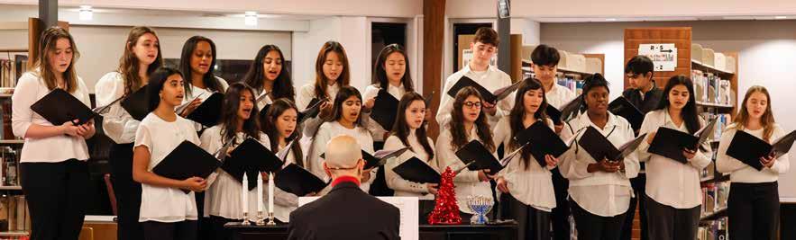 The Middle School also enjoyed a celebratory sendoff in the days leading up to winter break. The Secret Snowflake Gift Exchange—a longstanding tradition for Grades 6 through 8—was accompanied by special snacks chosen by the student leaders for each grade. Middle Schoolers provided their own entertainment with holiday performances and seasonal vignettes that reflect the work they have been doing in their Arts elective classes.