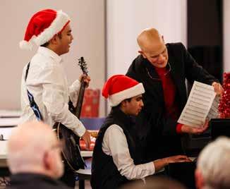 annual party to organize a toy drive in the weeks leading up to the festivities. Juniors Proctors host a book fair to ensure that every child in attendance can choose a book to take home. In addition to the books and hundreds of warm hats and gloves, the School community collected over 350 gifts with which to fill Santa's Toy Shop. During the party, while their children were entertained with games, crafts, and dancing led by Pennington’s student “elves,” parents could go “shopping” and have gifts wrapped to take with them. Families also enjoyed a delicious turkey dinner with all the trimmings, courtesy of Flik, the School’s dining service, and a visit from Santa helped round out the afternoon fun. According to Associate Head of School Chad Bridges, the true magic of this day comes from creating “a space for families to momentarily escape their daily struggles, to experience joy, and to build relationships. The event gives families the power of choice, fosters dignity, and strengthens the bonds of community.” It is a fitting tradition for The Pennington School, which is committed to compassion, teamwork, and service, and aptly reflects the spirit of the holiday season.