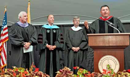 FROM CRISPLY LINED ATHLETIC FIELDS TO THE MIDDLE SCHOOL POLO SALE, SUREFIRE SIGNS OF FALL HERALD ANOTHER SCHOOL YEAR, UNDERSCORED ANNUALLY AT CONVOCATION WITH A SPECIAL ANNOUNCEMENT FROM THE HEAD OF SCHOOL. On a warm Friday evening, under the tent on O’Hanlon Green, Dr. William Hawkey introduced his theme for the 2025-26 academic year: “What’s Your Impact?" Hawkey’s inspiration came from former Head of School Lyle Rigg and former Dean of Students and longtime teacher Tom Liwosz.