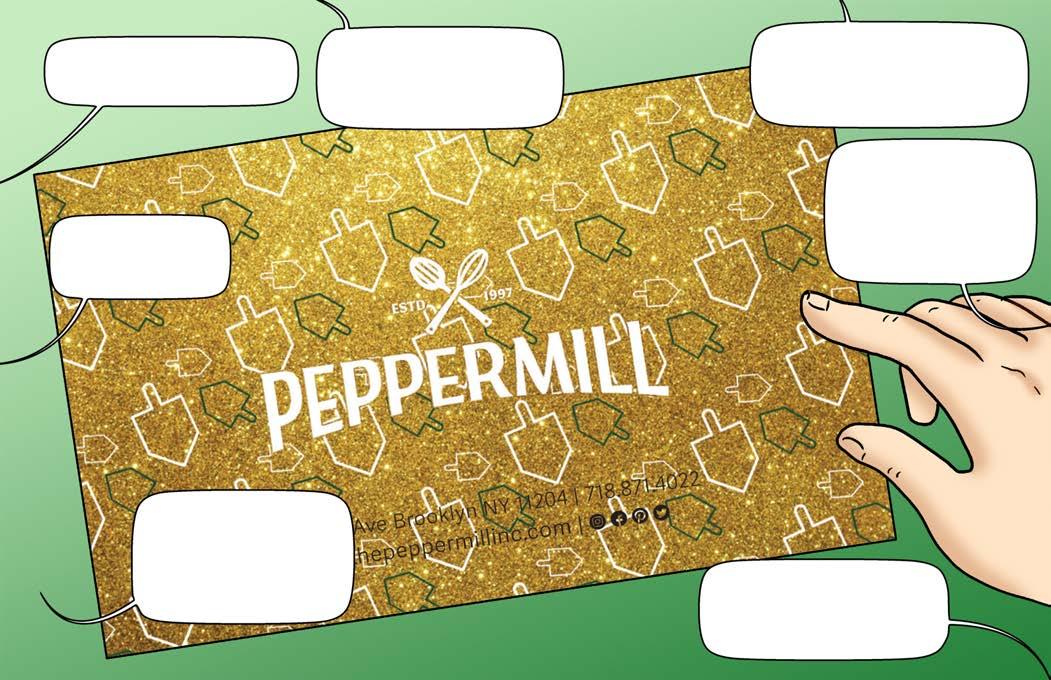 Got a list of people you need to thank? A gift card to The Peppermill is everyone’s favorite “gelt” for Chanukah! Teachers, therapists, employees, co-workers, daughters and daughters-in-law will all appreciate this useful treat. Our exclusive Chanukah-themed gift card will show them you put extra thought into the gift!