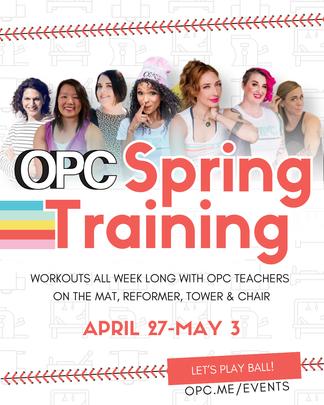 Also coming up: Spring Training with Lesley Logan (April 27-May 3), featuring 10 live workouts with OPC teachers across Mat, Reformer, Tower, and Chair Replays are also available until May 10 Registration opens April 16 mark your calendar!