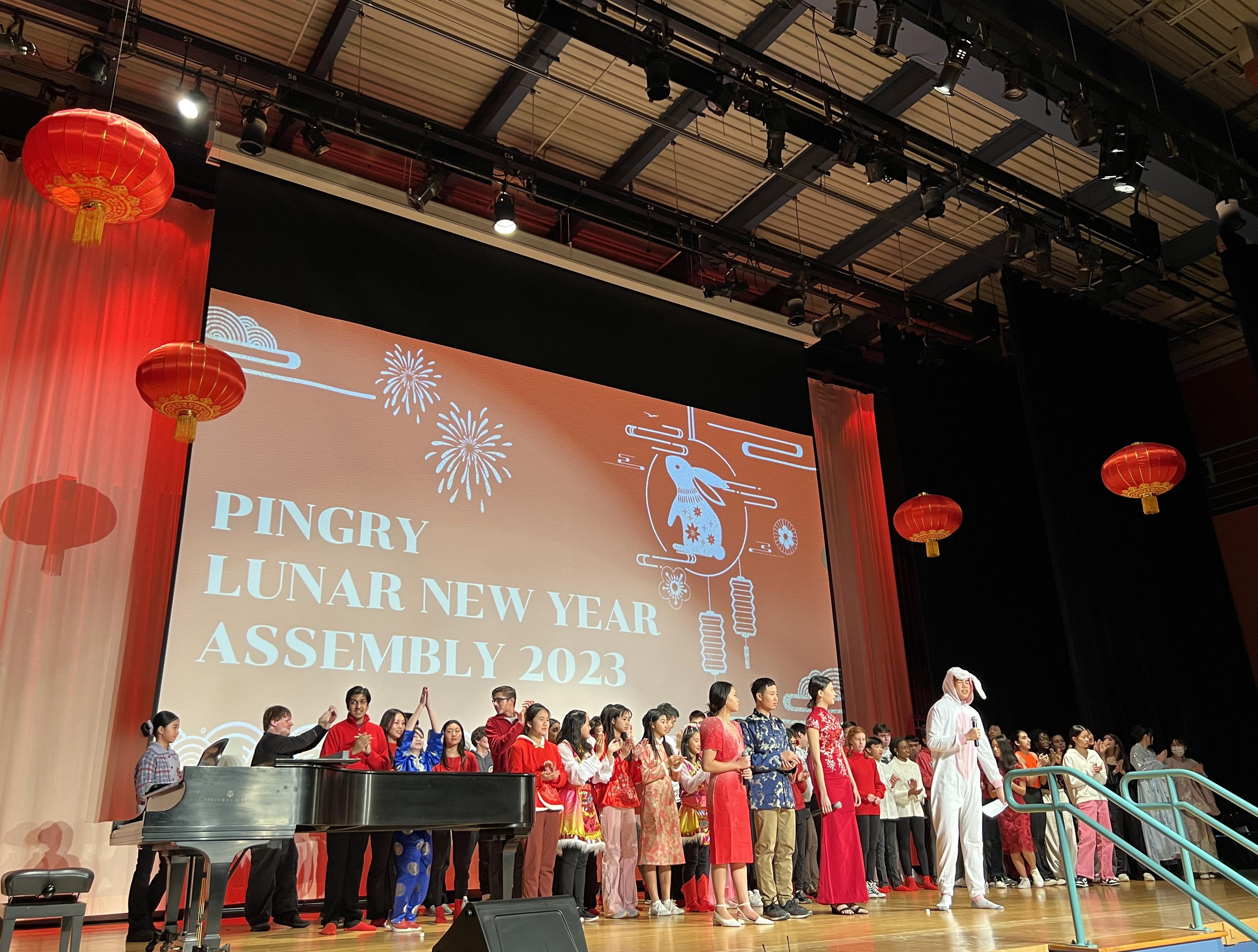 Upper and Middle School students gathered to watch the annual Lunar New Year assembly on January 23.