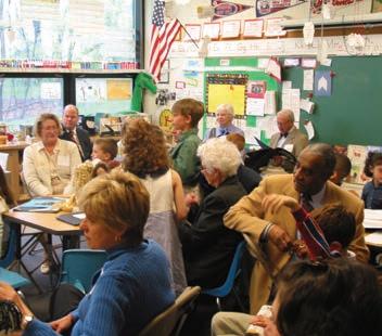 BELOW, CLOCKWISE FROM UPPER LEFT: Dr. Sarkin in the Hostetter Arts Center Gallery in 2004 for his first solo exhibit at Pingry; Director of Middle School Athletics Gerry Vanasse P’14, ’20 used Dr. Sarkin’s drawing from the March 2012 Pingry concert as a metaphor for the type of student Pingry seeks to develop (well-rounded, vibrant, energetic, and multi-layered, with honor at the core). Dr. Sarkin later surprised Mr. Vanasse with the new “Honor” painting; Then–Upper School Visual Arts Teacher Jane Edwards’ class meeting with Dr. Sarkin during his 2014 Pingry visit; Dr. Sarkin during a 2006 Pingry visit, accompanied by then–Visual Arts Department Chair Miles Boyd