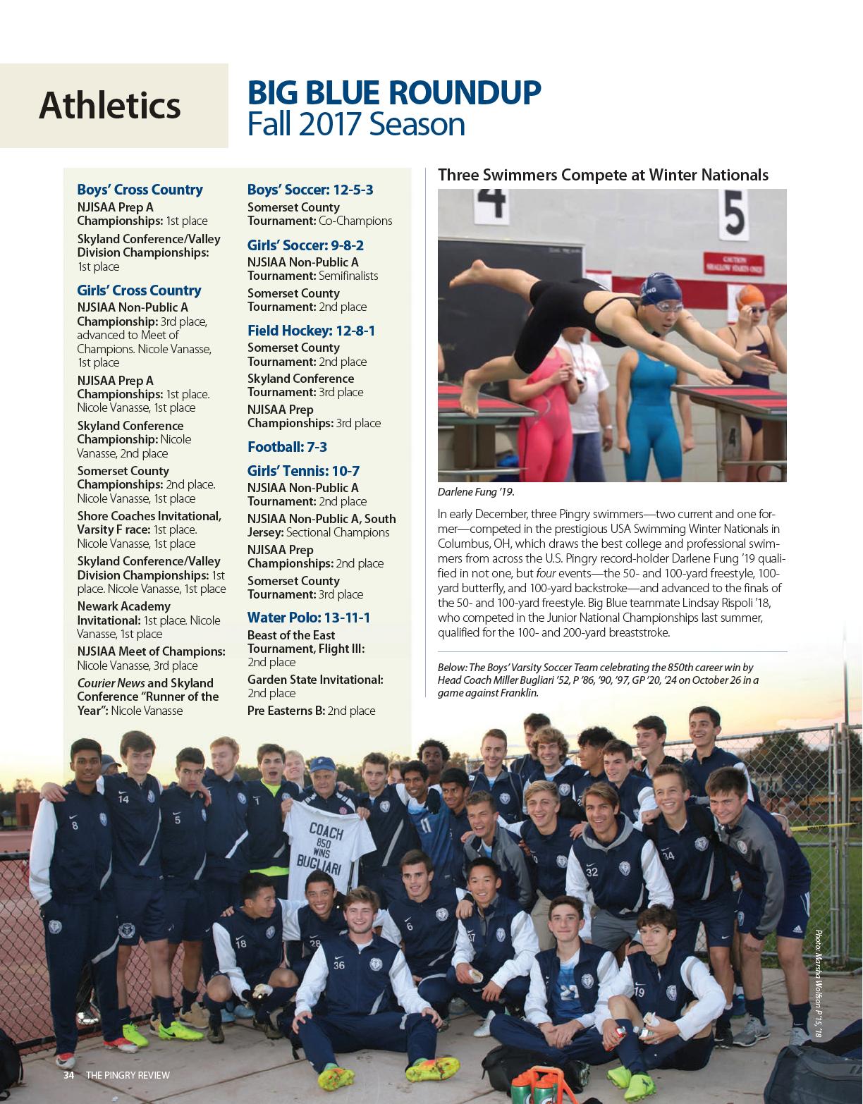 sal praise from everyone who knew him—his runners spoke of his kindness, loyalty, cuttingedge use of visualization techniques, and constant encouragement to work harder and improve. One alumnus says, “You wanted to run well for him because you knew how much he was sacrificing to give us all he had.” In 1997, his fellow coach Victor Nazario P ’90, ’94 honored him by establishing Pingry’s Ed Scott Middle School Invitational, an annual event with championship races for boy and girl cross country runners from independent and public schools—mainly from Somerset and Morris Counties, but the event’s reputation has drawn schools from even greater distances. The invitational mirrors high school championships, with seven runners per gender, plus 10 for the reserve race (at one time, Pingry hosted as many as 18 schools in one race). Prior to Pingry, Mr. Scott taught in the Elizabeth public school system. Survivors include his wife Johnsie; sons Edward III, Drew, and Todd; granddaughter Jaidynne; brothers Joseph and Wilfred; and sisters Jenny Herbert and Mary Witherspoon.