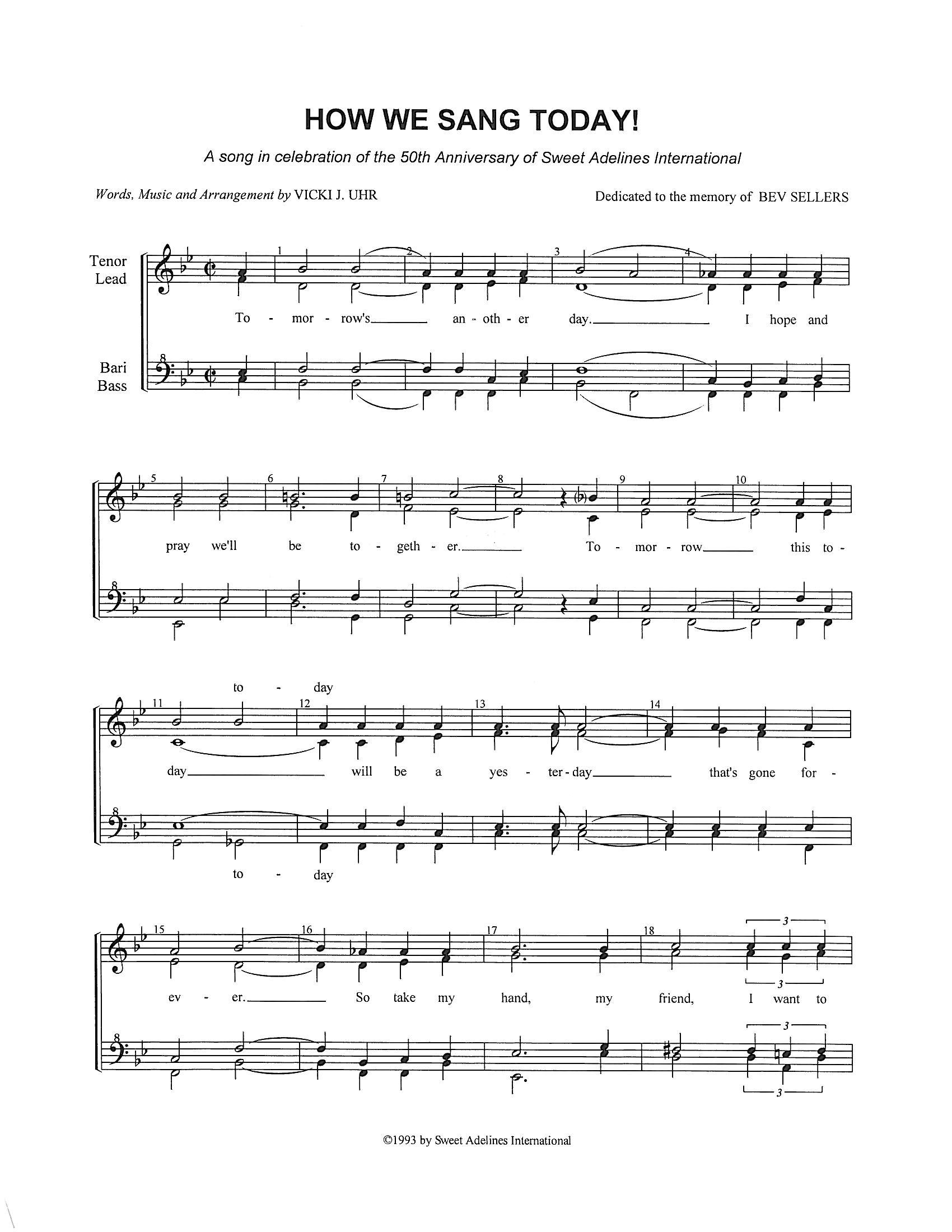 1) This key (F) should work well for female barbershop ensembles, but feel free to pitch it up or down if that better fits your particular ensemble’s vocal strengths. This arrangement is also available in A b (TTBB for female voices) and C (SATB for mixed voices).