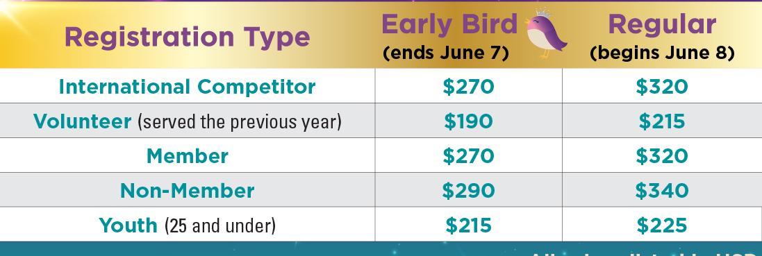 As always, thank you for the incredible good work you do in your communities, both on and off stage. For our regional, Rising Star, and Diamond Division competitors – break a lash! We look forward to seeing everyone onstage, in education classes, in the audience, and in the hallways this October at our International Convention in Columbus, Ohio. We will do everything we can to help our members THRIVE!