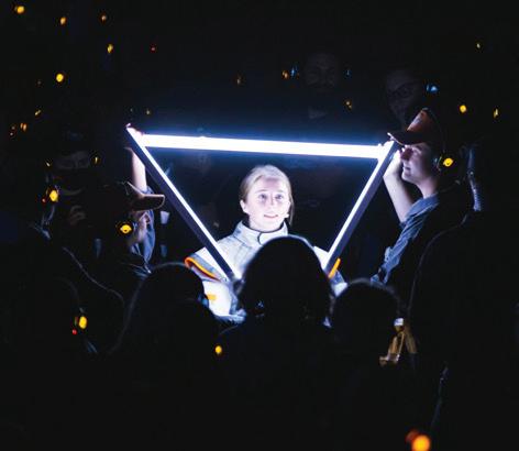 “We are inspired by the atmosphere and connectivity of live theatre, we make outdoor performances that blend classic iconography with neon light. Through this work, we introduce ourselves to communities and encourage them to be bold and brave by inviting them to work closely with us and alongside us.