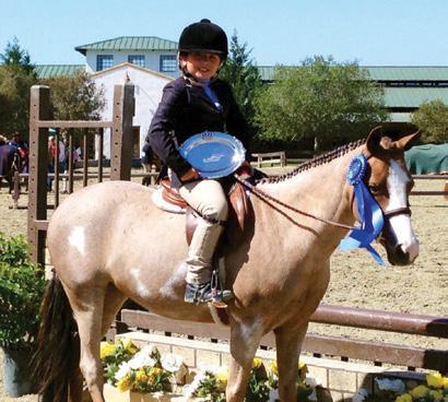 Vivian was 10, on her medium pony at Pony Finals, and she did well in the model and the hack. She’s coming back third, she goes in, jumps the first jump, it’s beautiful. Then the pony trips on the backside and Vivian almost goes flying. She’s totally discombob ulated, gets herself back in the saddle, goes back around, but when something like that hap pens you’re so shocked, so she jumped the first jump and ended up getting eliminated.”