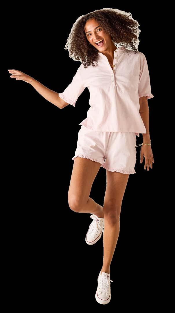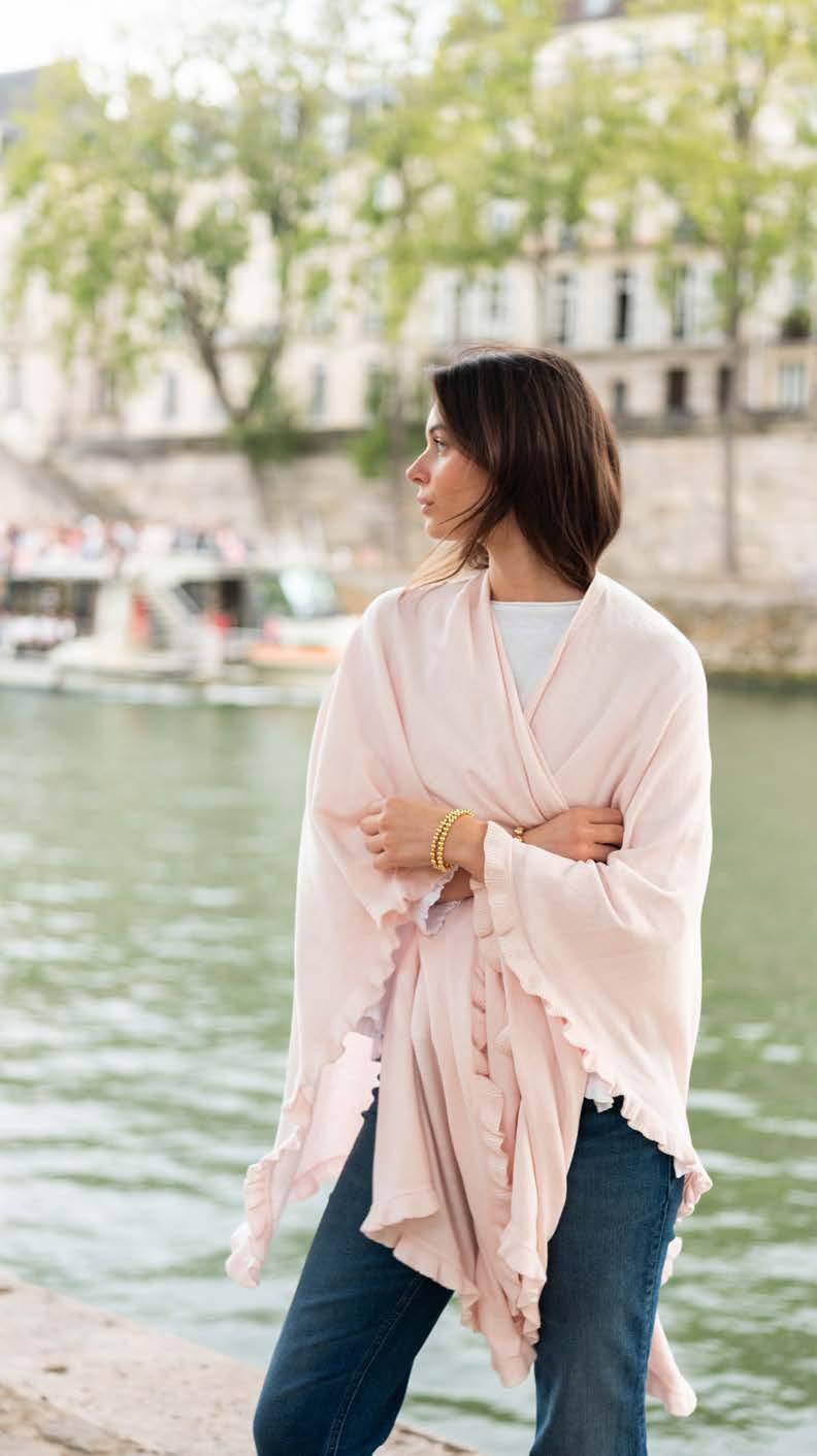 In these pages, you’ll rediscover some of your favorite silhouettes in new shades nodding to the gelato and espresso sold on Parisian market streets like Rue Cler. We’ve added playful touches channeling the sun-drenched beach clubs along the French Riviera, with scalloped ric-rac hems and vibrant stripes. And as always, you’ll find versatile, travel-ready essentials crafted for the journey and designed with you in mind. Think of this collection as a sartorial souvenir from France, delivered straight home to you.