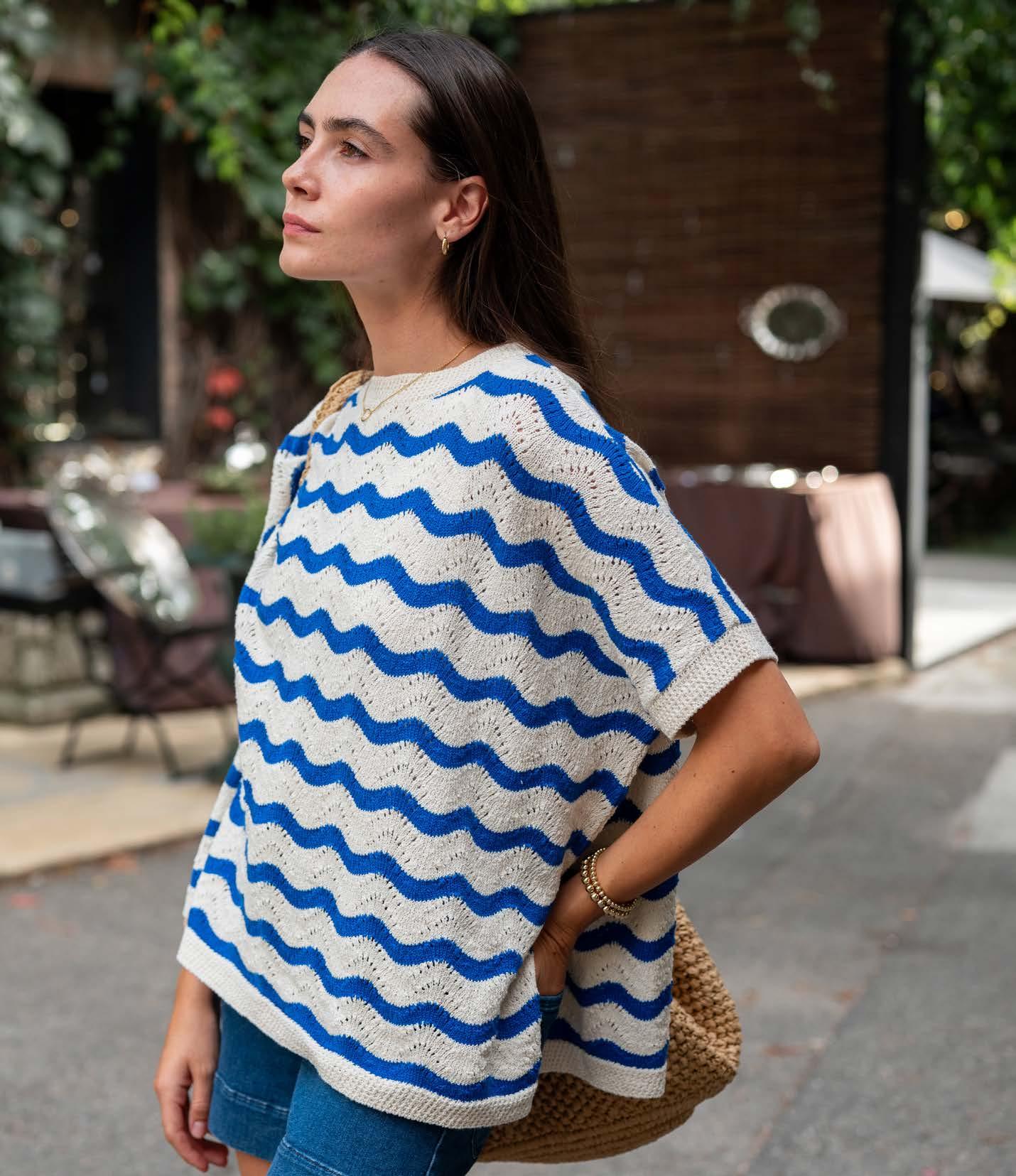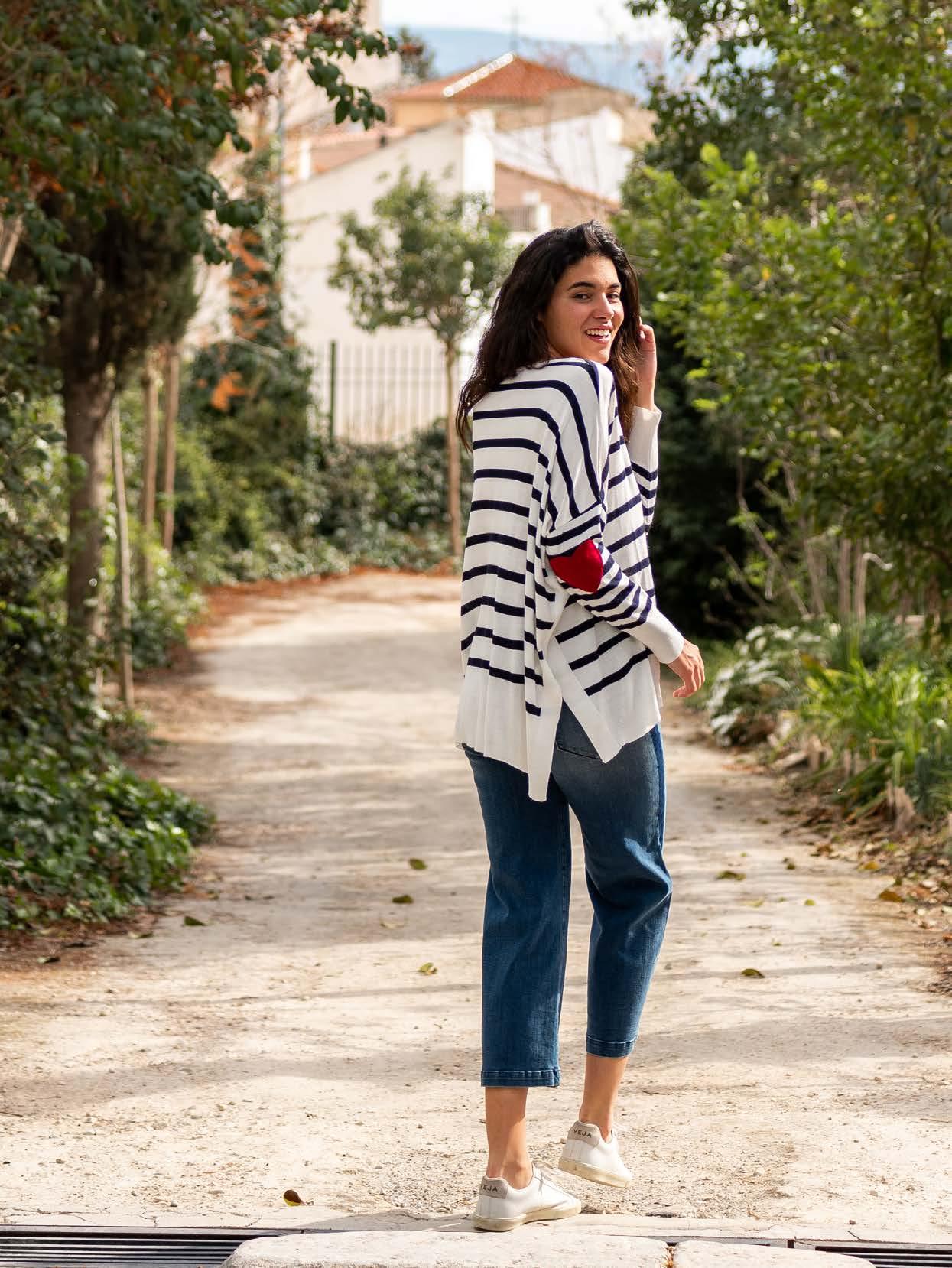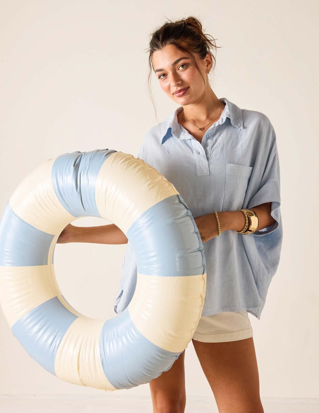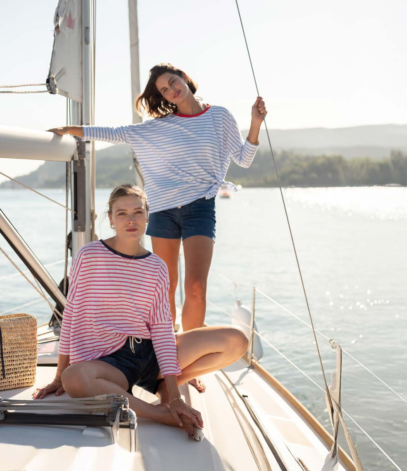 Our famous Catalina Tee in bold stripes with contrast piping for summer sailor spirits. The easy pop of colorful detail makes this tee stand out in any view. Ready to set sail with every detail you know and love—chic drop shoulder and comfortable split sides. Wear this over your swimsuit, with shorts or your favorite light wash jeans.