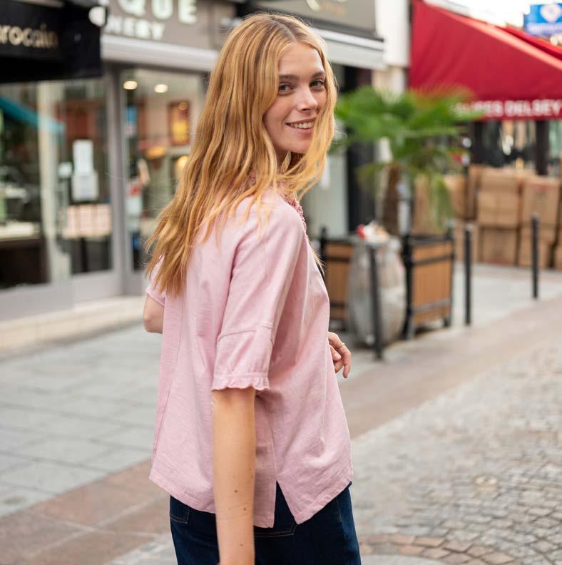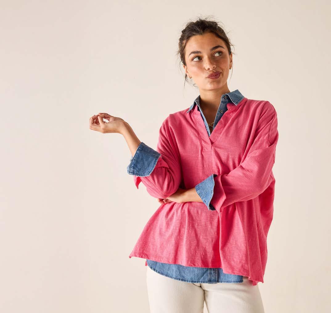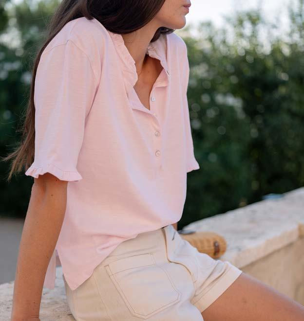Meet Josephine—our latest and greatest elevated tee. Sophisticated with a Henley placket, ruffle neckline and sleeve detail, yet simple with small side slits and a clean, flattering shape. Wear it as a light layer under your favorite sweater for a peek of ruffle, or on its own with your favorite jeans for everyday ease. Soft, 100% cotton, and made to make styling easy.