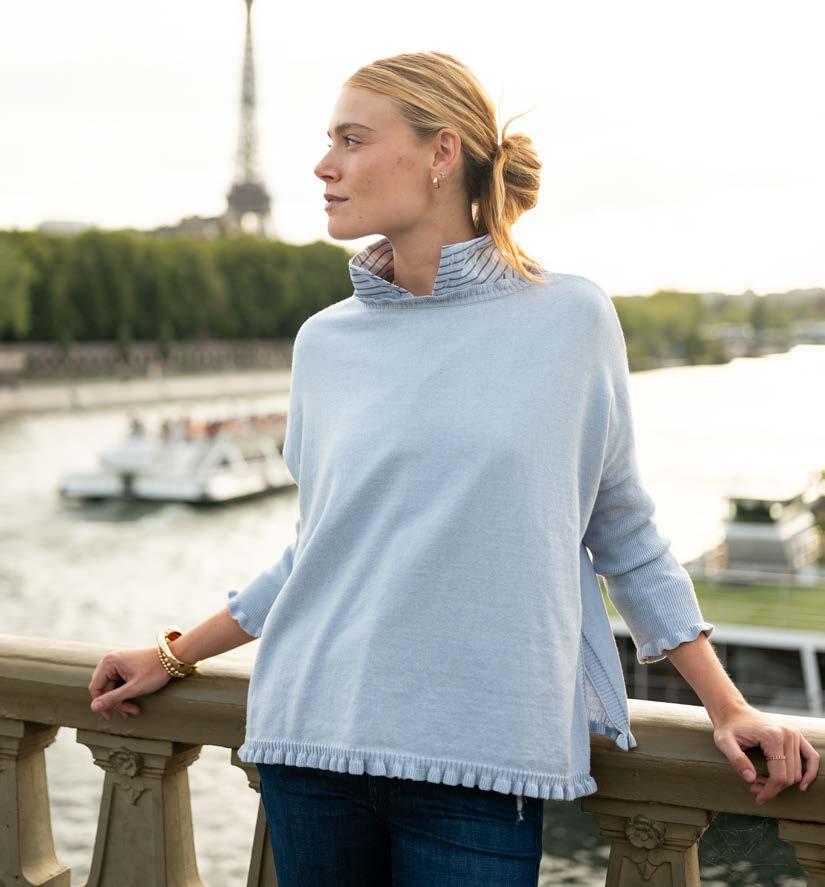 CATALINA COTTON RUFFLEY SWEATER in Dreamy Blue