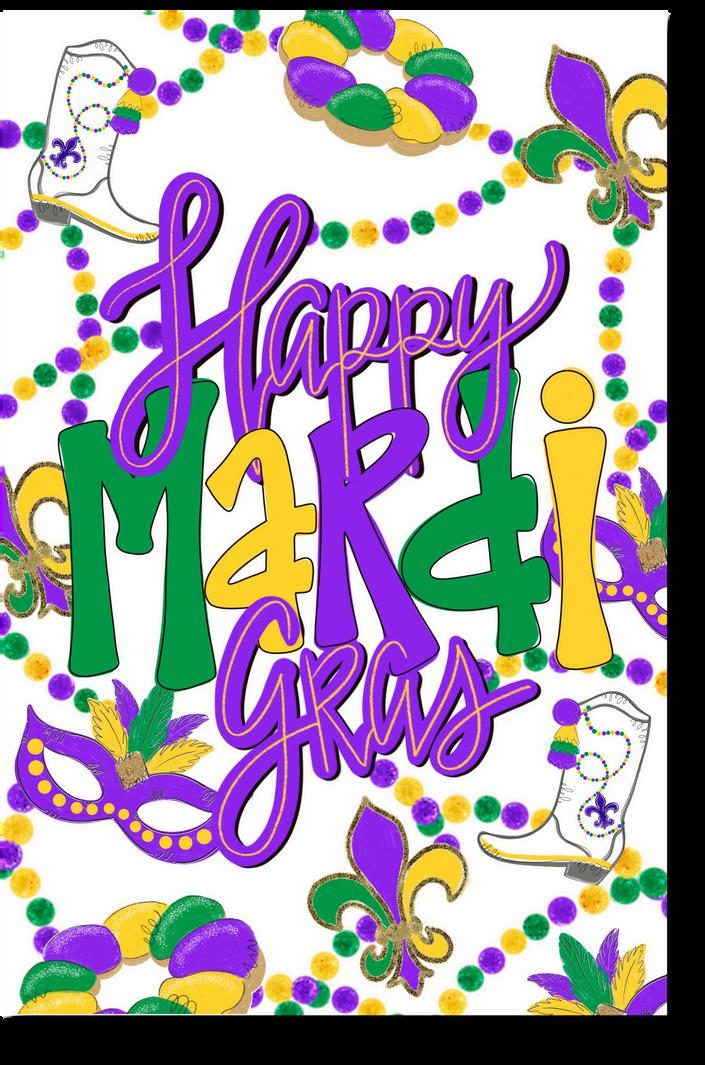 bold.bright.fun.HAPPY MARDI GRAS 23"H1456MARDI GRAS LOUISIANA 23"H1454MARDI GRAS BOOT 28"H1453FLEUR DE LIS 23"H1452LAISSEZ LE BON TEMPS 23"H1455KING CAKE 24“H1457DK GARDEN GLAMSDK TEA TOWELSM1244MARDI GRAS T-SHIRT
