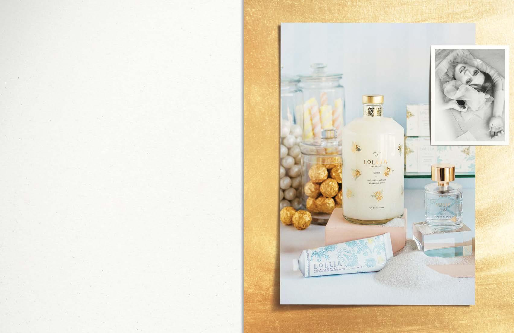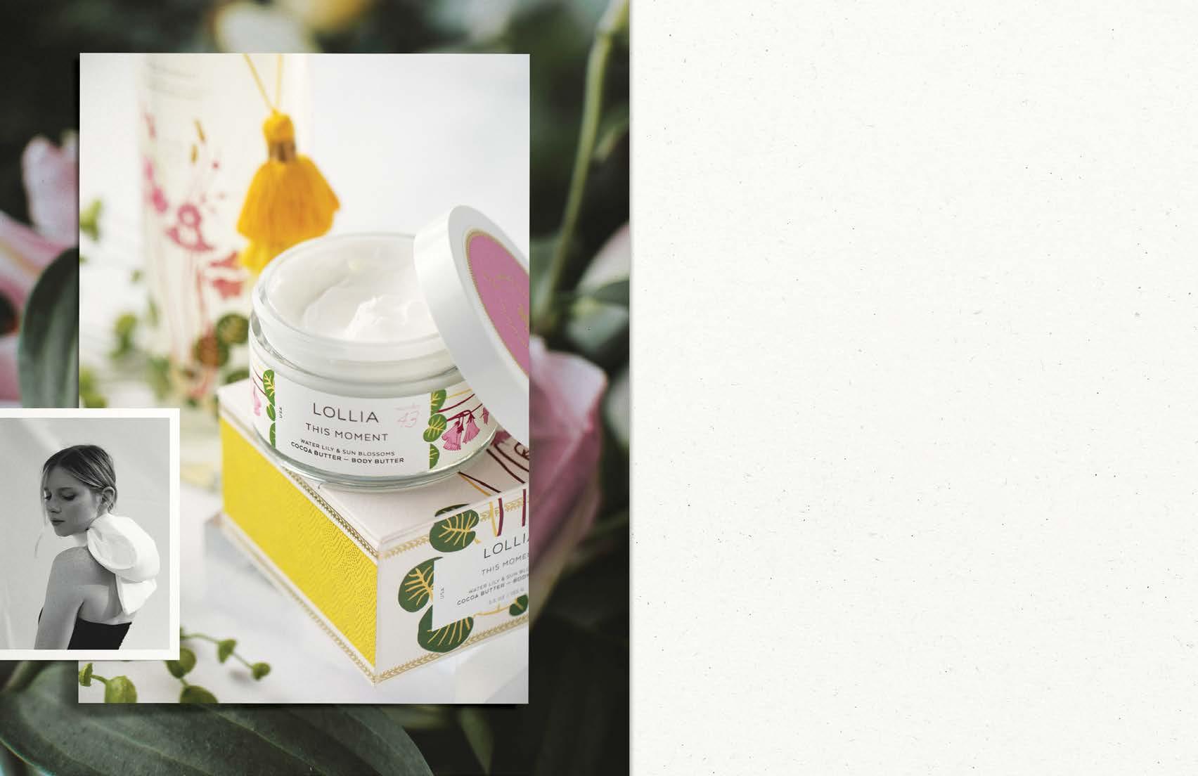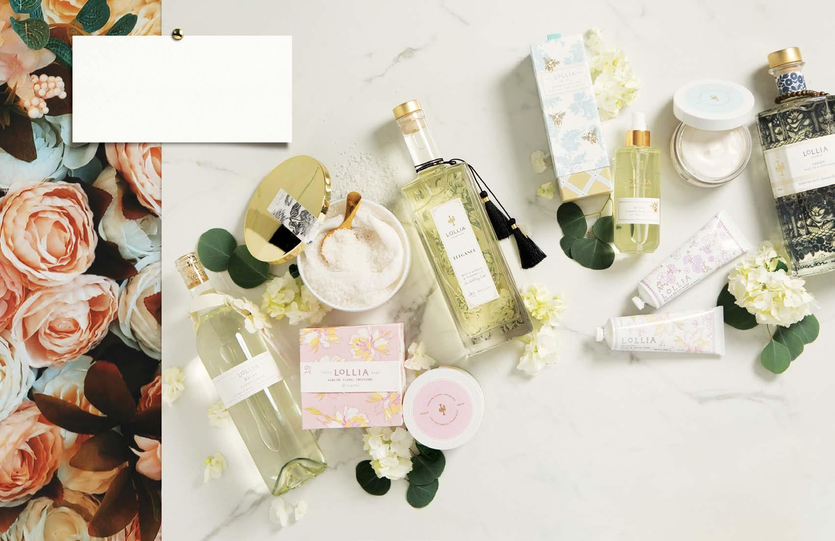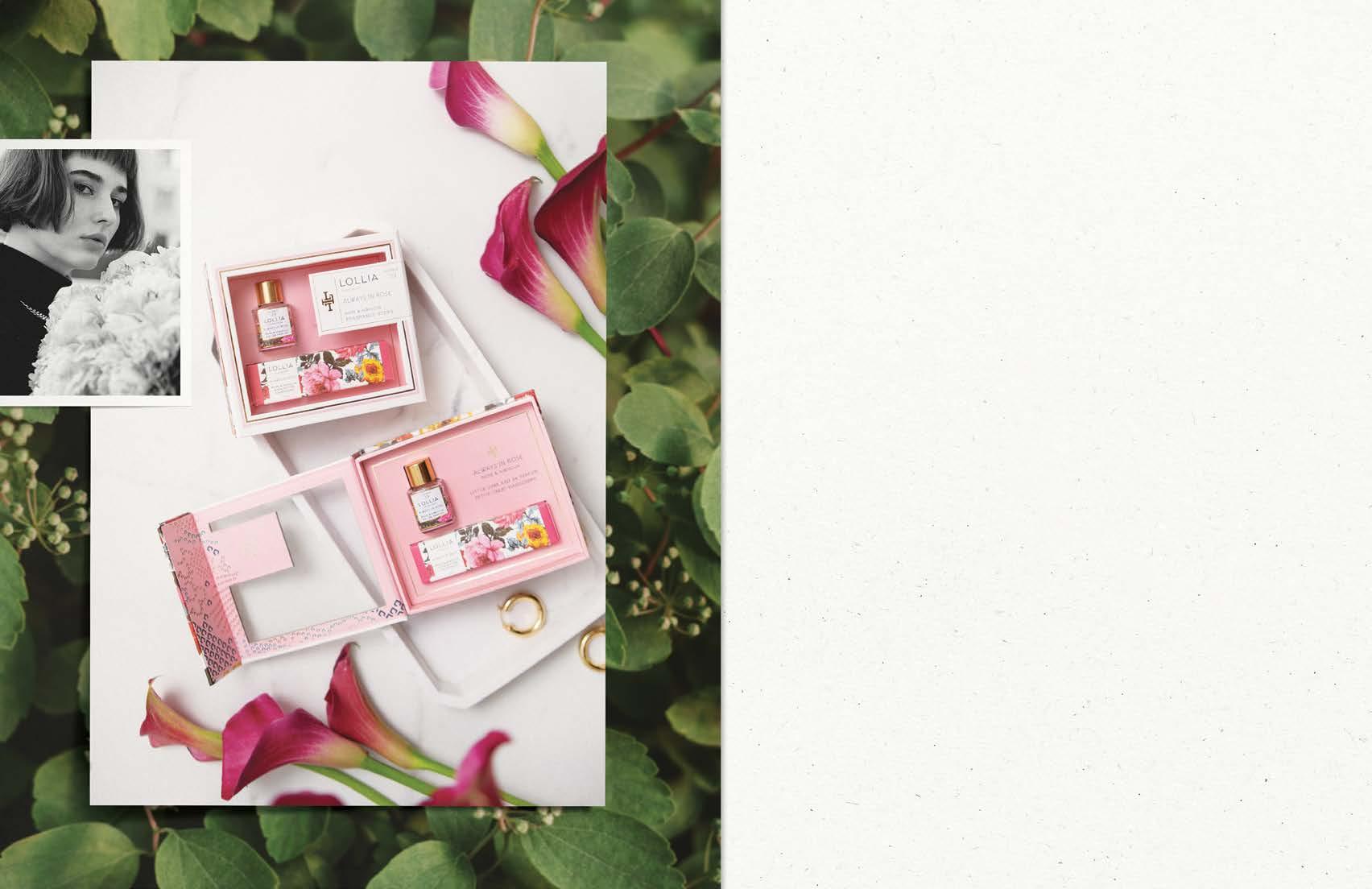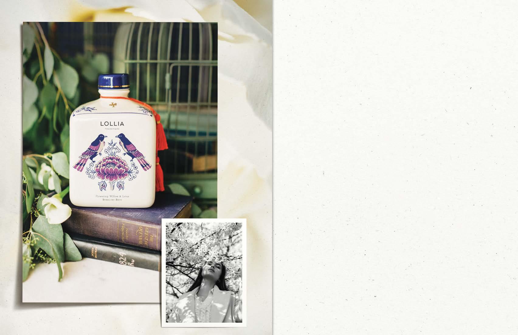 Inspired by signature mix and match patterns and fresh-picked color palettes, the Lollia Life is modern romantic luxury personified: unconscious allure, unstudied sophistication, close friends and quiet moments. The Lollia brand library houses a series of fragrance stories filled with boudoir luxuries made from the finest ingredients and superior formulations.