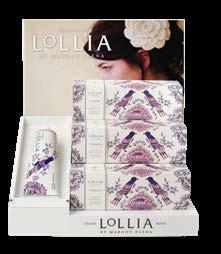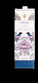 accompanied by notes of bright, crisp greens. little black dress of lollia bubble bath 10RJ CASE PACK OF 2 $29.00 / EA eau de parfum 10CJ CASE PACK OF 4 $34.00 / EA handcreme 10BJ CASE PACK OF 6 $13.50 / EA luminary 10QJ CASE PACK OF 4 $23.00 / EA dry body oil 10OJ CASE PACK OF 4 $24.00 / EA whipped body butter 10UPJ CASE PACK OF 3 $21.00 / EA fine bathing salts 10ZJ CASE PACK OF 2 $25.00 / EA perfumed shower gel 10SGJ CASE PACK OF 6 $11.50 / EA little luxe eau de parfum 10CPJ CASE PACK OF 24 $5.50 / EA petite treat handcreme 10BPJ CASE PACK OF 24 $4.50 / EA handcreme foil pack 10BFJ CASE PACK OF 25 $14.00 / CASE PACK travel eau de parfum J10CJ CASE PACK OF 6 $16.00 / EA new! 12 / MARGOT ELENA / LOLLIA WHOLESALE.MARGOTELENA.COM | 1-888-896-6398 | 13