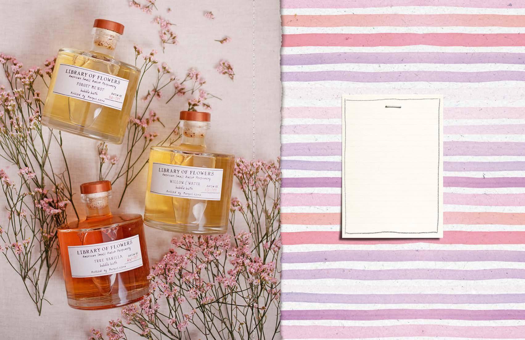 Featuring: Archive Bubble Bath Trio, Archive Journey Within Body Lotion, Library of Flowers