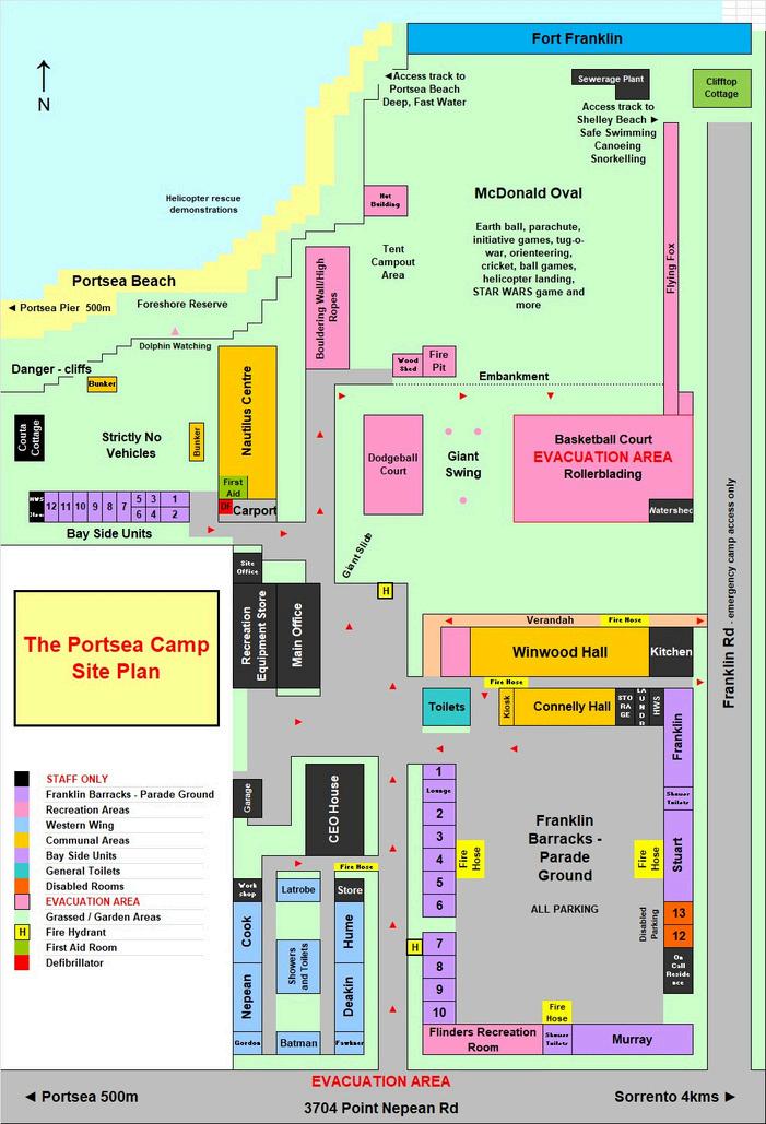 Our Bayside Units are positioned on the cliff top facing Port Phillip Bay There are 12 en-suite rooms sleeping from 4-8 in bunk beds, overlooking a Portsea cliff top grassy area The Nautilus Centre is the communal area which has a fully equipped kitchen, first aid room, area for night activities with AV equipment and a lounge/quiet space.