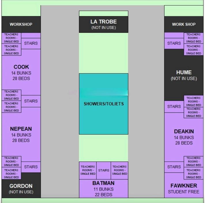 This wing was constructed in the 1880's and is listed by Heritage Victoria There are 3 bunk houses with 36 to 38 beds in each for groups preferring the sense of community and fun that large rooms inevitably bring, and also 12 ensuite rooms for 3 to 6 people each Connelly Hall is the communal area, which has a kitchenette, lounge, tables and chairs. You have the use of Winwood hall for night activities, that has AV equipment and a stage