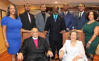 L-R: First Lady Cheryl and Bishop Ronald L. Owens Standing L-R: Owens’ daughter Tracy Conner; and grandsons Blair Bartlett, Joshua Conner, Kirby Jones, Adam Conner II, Brandon Bartlett and daughter Kimberly Owens. Seated L-R: Bishop Rev. Dr. Ronald L. and First Lady Cheryl Owens Standing L-R: Bishops Donald Hilliard Jr., Nikolaos G. Brown, George Searight, Rudy Carlton, Jeffery J. Broughton Sr., Eric McMillan, Reggie Hall, and Overseer Kyshon Mitchell. Center: Chief Celebrant Bishop Eric D. Garnes anoints Bishop Ronald L. Owens L-R: Bishops Jeffery J. Broughton Sr., E. Earl Jenkins, Ronald L.Owens, Eric. D. Garnes, and George E. Gibson II