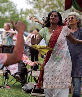 Left. Attendees dance during the "Festival of Color" Holi celebration at the West State Street Park in Athens, April 12, 2026.
