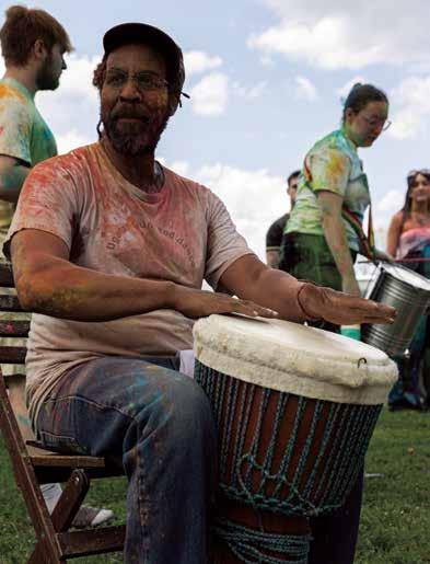 Right. A drummer performs during the “Festival of Color” Holi celebration at the West State Street Park in Athens, April 12, 2026.