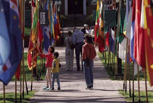 Two children examine a flag while their parent looks on during Ohio University's International Street Fair, Saturday, April 11, 2026, in Athens, Ohio.