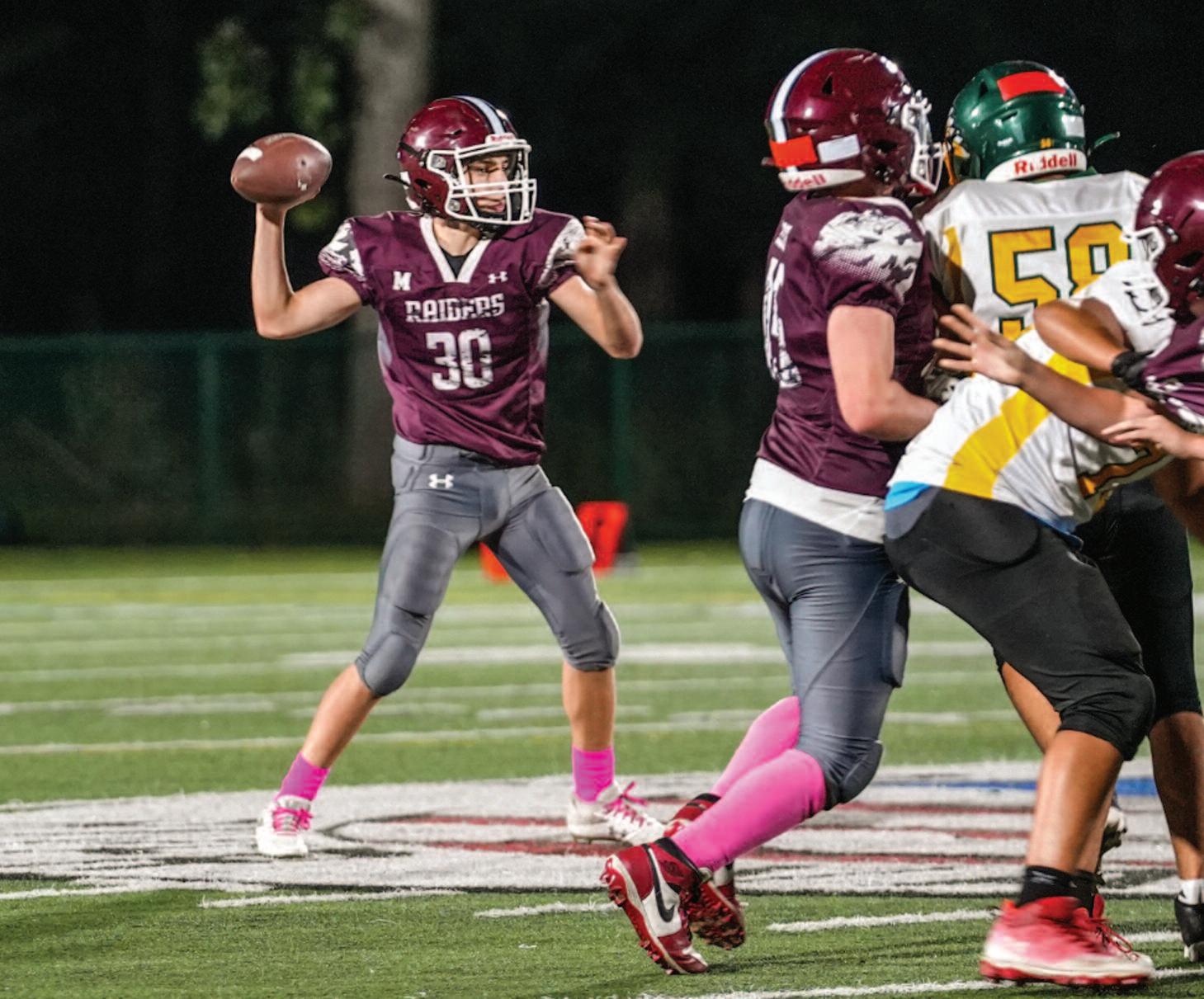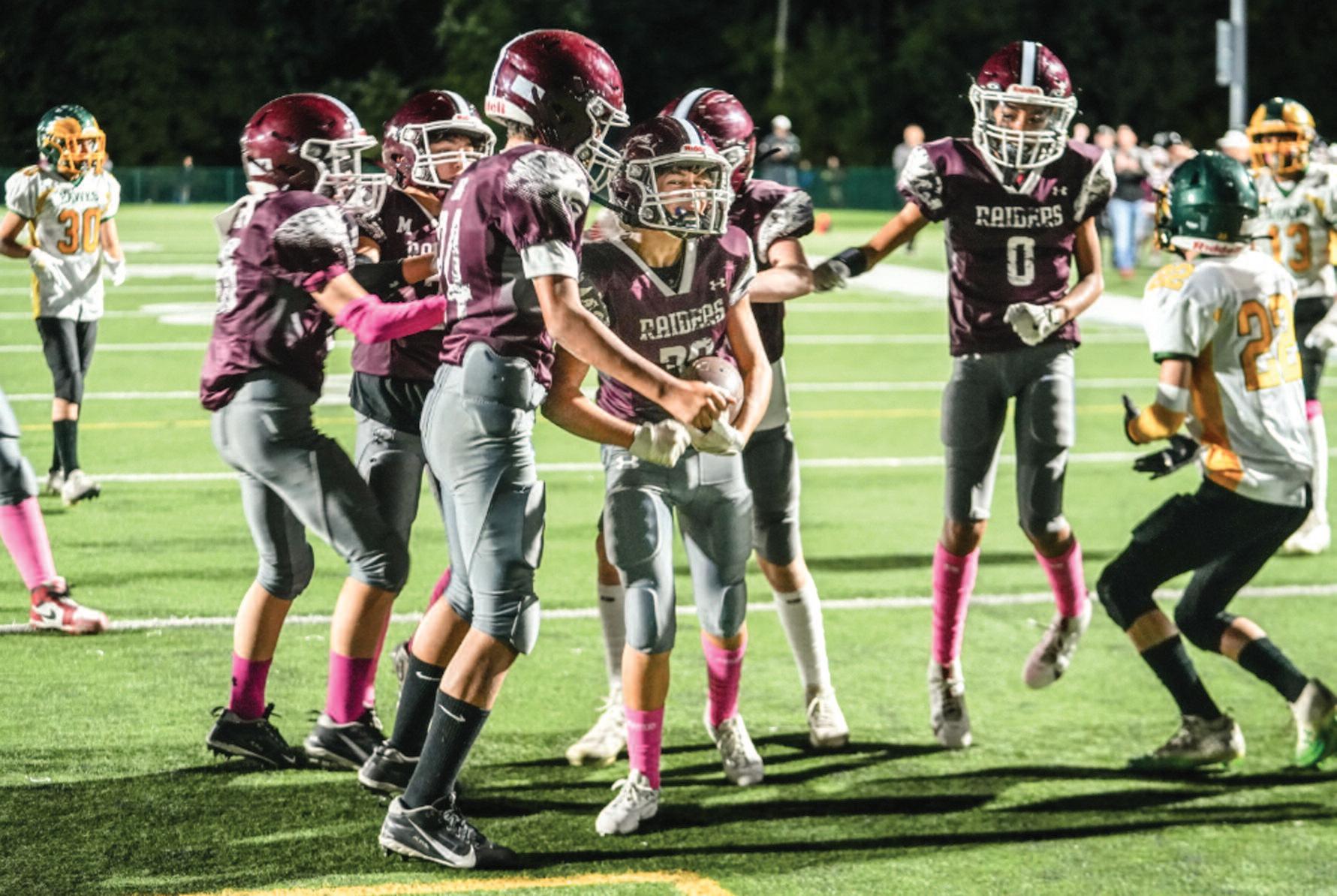 Once the Raider offense got the ball back, they drove down the field thanks to some tough blocking and running. RV RB Keith Mulcare (#25) rumbled his way to the end zone for the second touchdown and extra point of the game bringing the