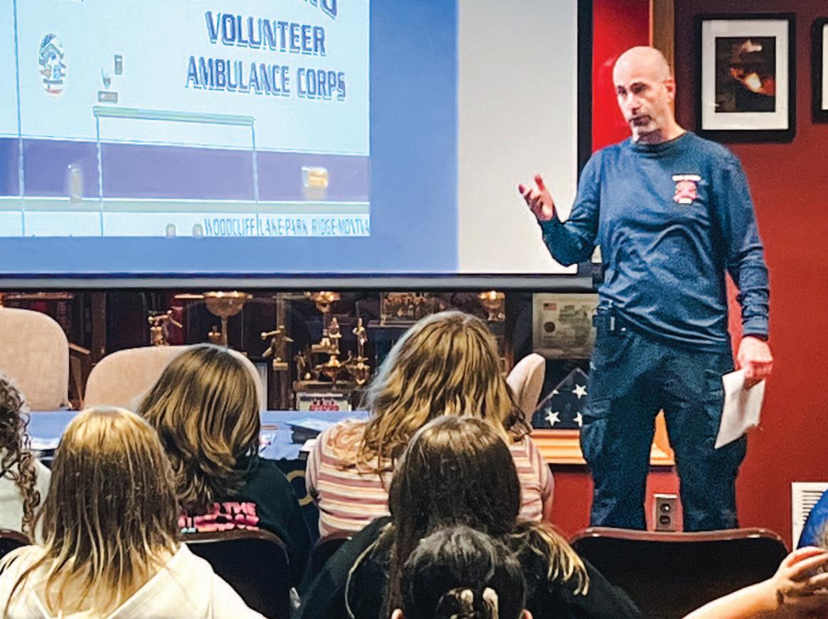 The program, run with the able assistance of the GFWC Pascack Junior Womanʼs Club, featured speakers from the fire department, powered by Lt. Brad Moser and Fire Marshal John Hansen. Presentations were given by Yale Glazer of the TriBoro Volunteer Ambulance Corps, Park Ridge Police Detective Gerry Powers, Joseph Derienzo of Northwest Bergen Central Dispatch, and Dr. Michelle Mayer of Chestnut Ridge Pediatric Associates.