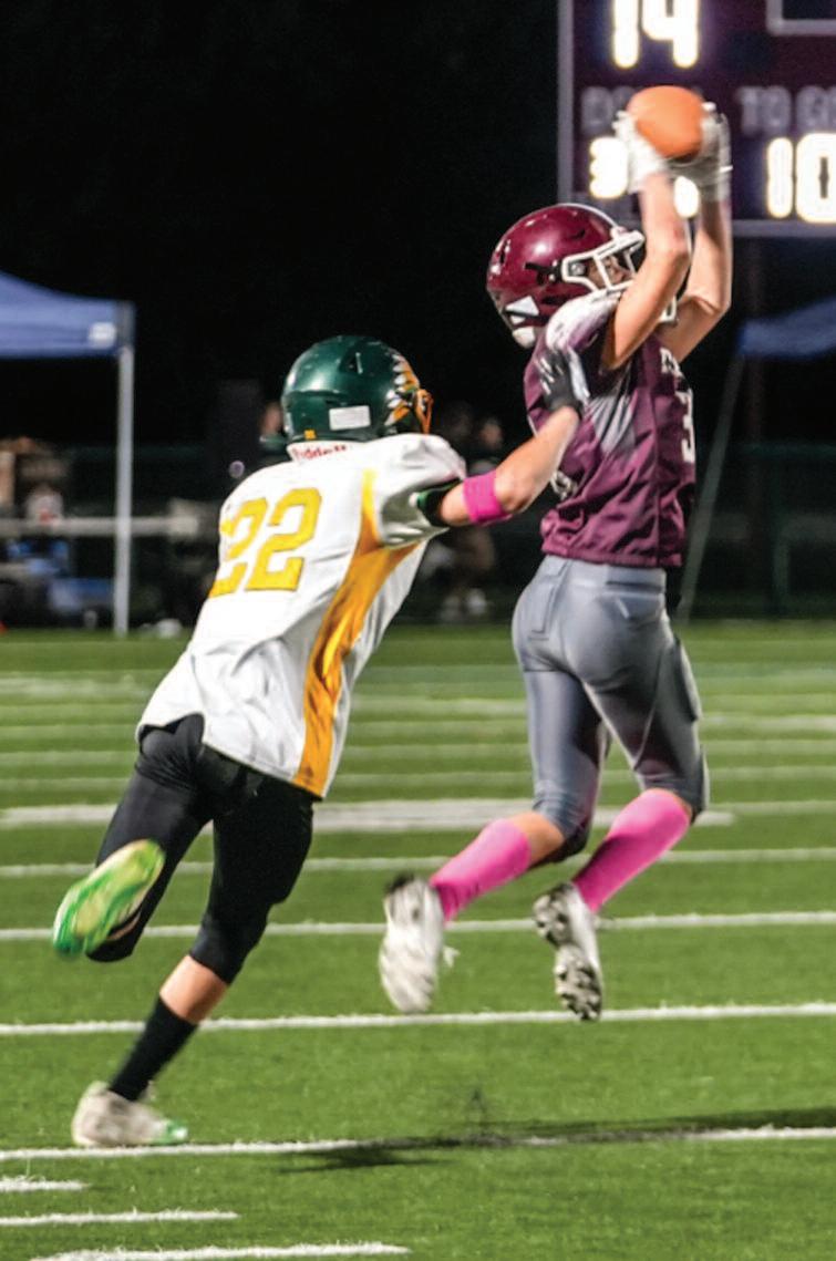 QB Ryan McTigue (#30) to find his WR, Tyler Hurst (#38), who caught the ball on the 10-yard line and ran it in for the first score of the game. RV then secured the extra point and