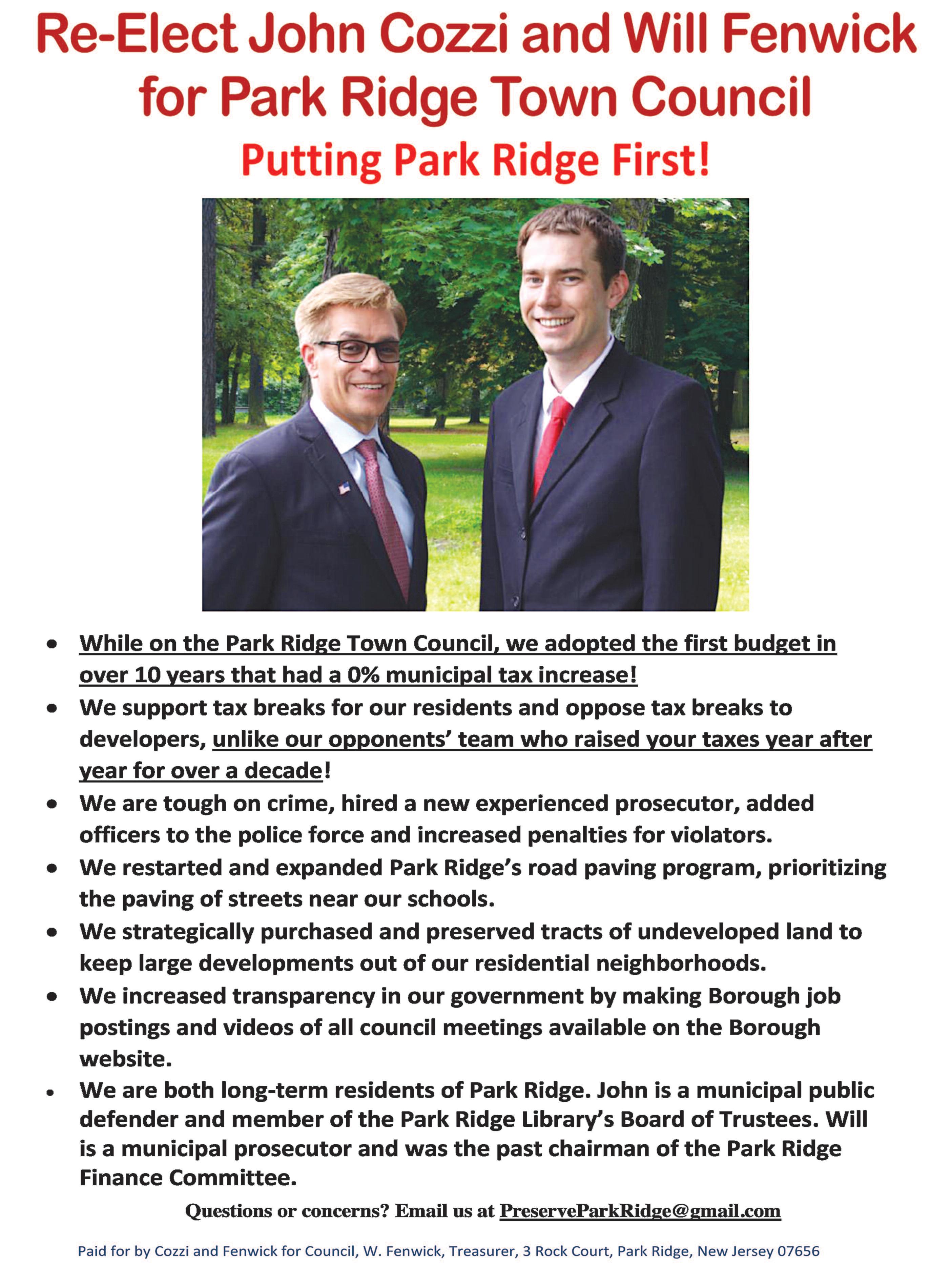 I urge others to please support Lisa Bontemps and Kris Rasmussen in the upcoming election for Westwood Borough Council.