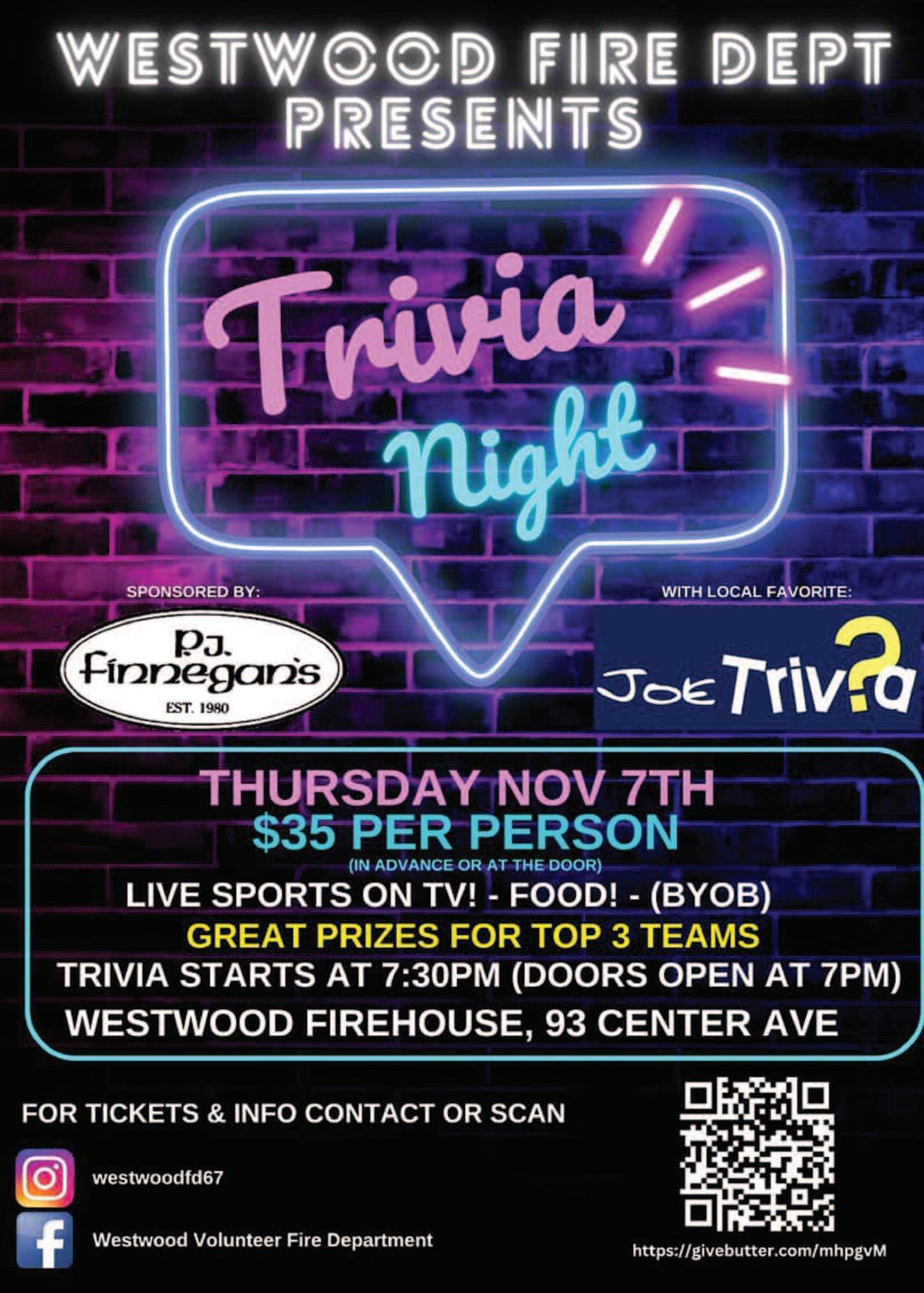 Westwood Fire Departmentʼs Trivia Night Fundraiser