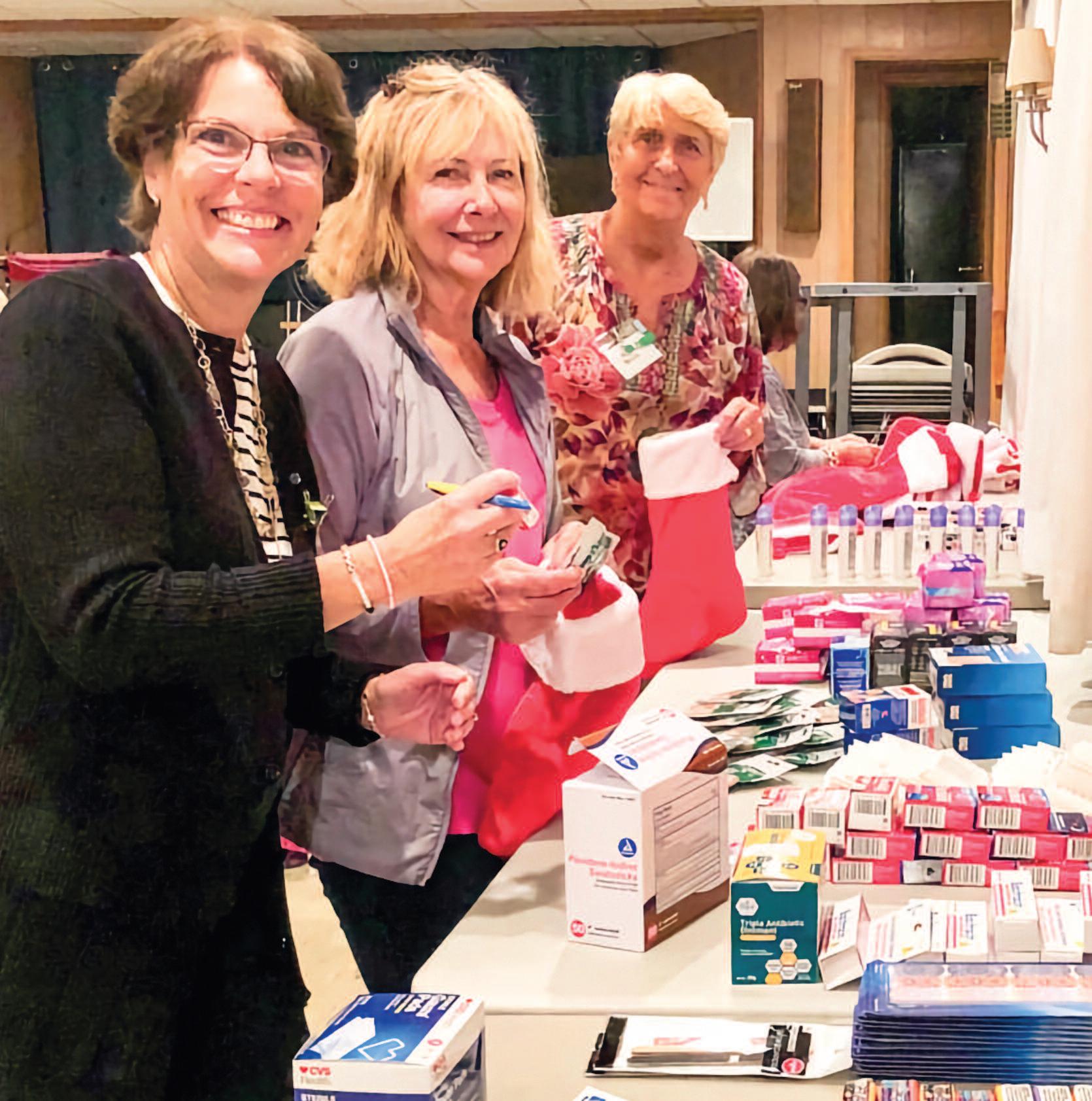 Members of the GFWC/NJSFWC Woman’s Club of Westwood help fill Christmas stockings for women serving in the military.