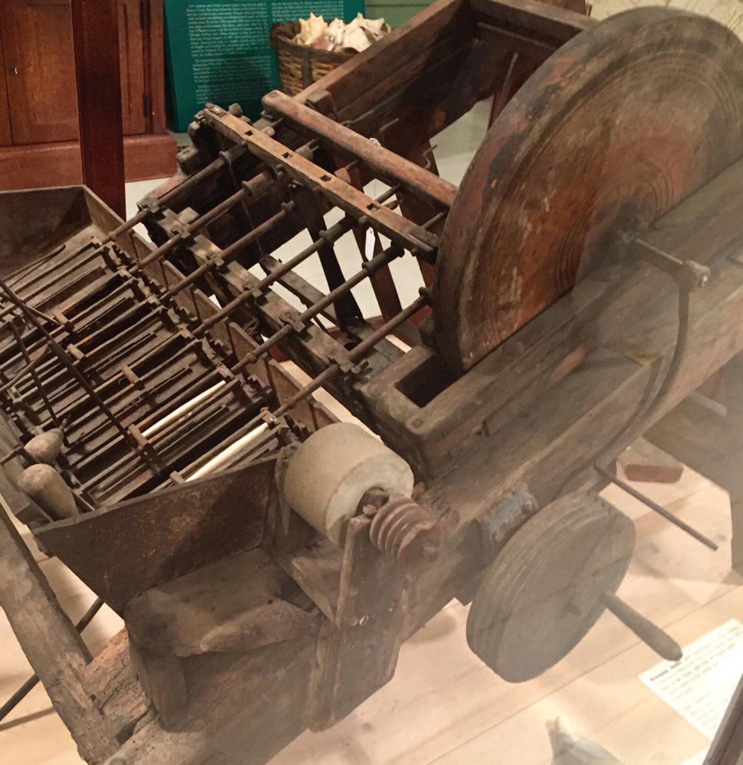 In the mid-1800s the Campbells revolutionized wampum production by inventing a hydraulic drilling machine that streamlined the production process. The hand-made wooden machine enabled multiple hair pipes to be drilled at one time, uniformly, and with