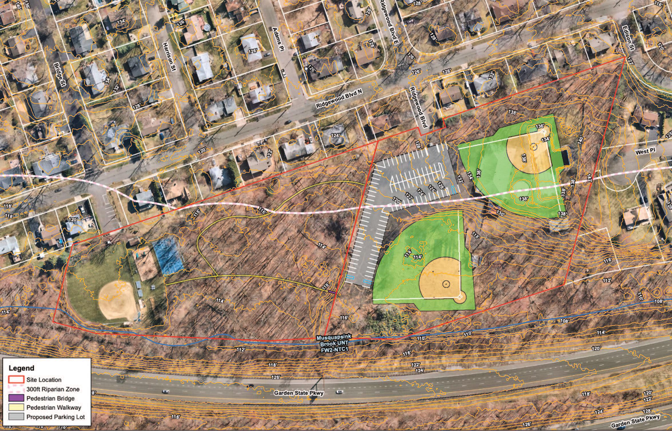 • Developer attempted this already: The 450 property is zoned for one single-family home. Yet, in 2020 an aggressive developer applied for approval to build an enormously dense complex with four condos and a twostory apartment building of 44 rental units right on top of Memorial Field, including towering retaining walls to accommodate the steep slope in that narrow strip of land and removing 300 trees, which absorb nearly 3,000,000 gallons of water/year. This gargantuan complex would have become “the view” from Memorial Field. 450 Pascack is still being held for a future development project.