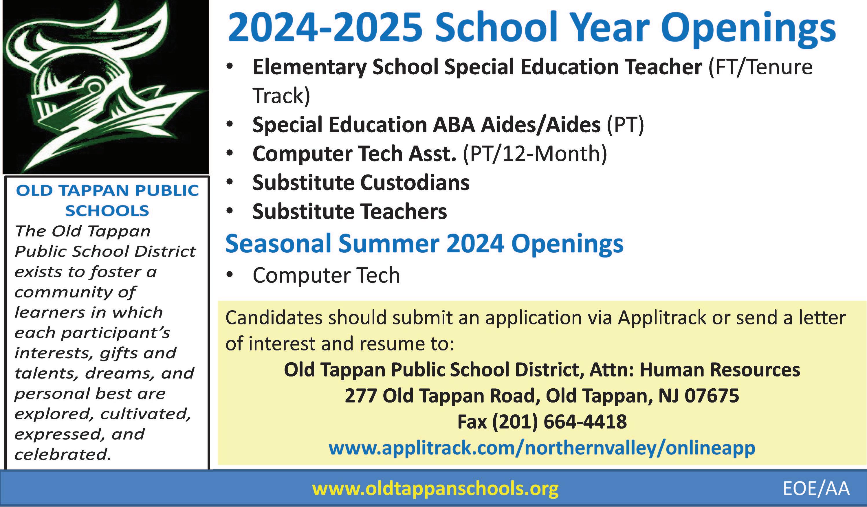 PART-TIME SENIOR VAN DRIVER – BOROUGH OF WESTWOOD - Must possess a valid New Jersey Driver’s License and have the ability to operate wheelchair lift equipment after completing the required training video: Wheelchair Lift and Securement. Must be able to work harmoniously, cooperatively, and courteously with Senior and Disabled passengers at all times and be able to maintain a calm manner in stressful and emergency situations. Hours required are 9 a.m. to 2 p.m., one to two days a week with occasional hours for special events. Geography and community knowledge of the local area, including Hillsdale, Emerson, Westwood, River Vale, Township of Washington, etc. required as well as ability to follow GPS, maps and written directions. Candidate must possess effective time management, planning and organizational skills. The Borough reserves the right to review resumes and conduct interviews as they are received. Interested candidates should send cover letter and resume via email to Gary Buchheister atgbuchheister@westwoodnj.gov on or before June 14, 2024 by 4pm. Resumes to be mailed should be sent to Gary Buchheister, Recreation Director, 55 Jefferson Avenue, Westwood NJ 07675. Westwood is an Equal Opportunity Employer