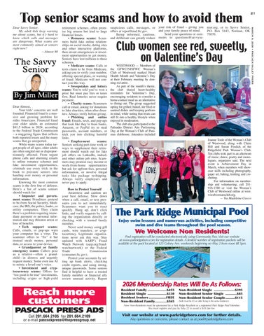 The Womanʼs Club of Westwood welcomes new members. For information on membership and upcoming activities, call 201916-1580 or visit westwoodwomansclub.org.