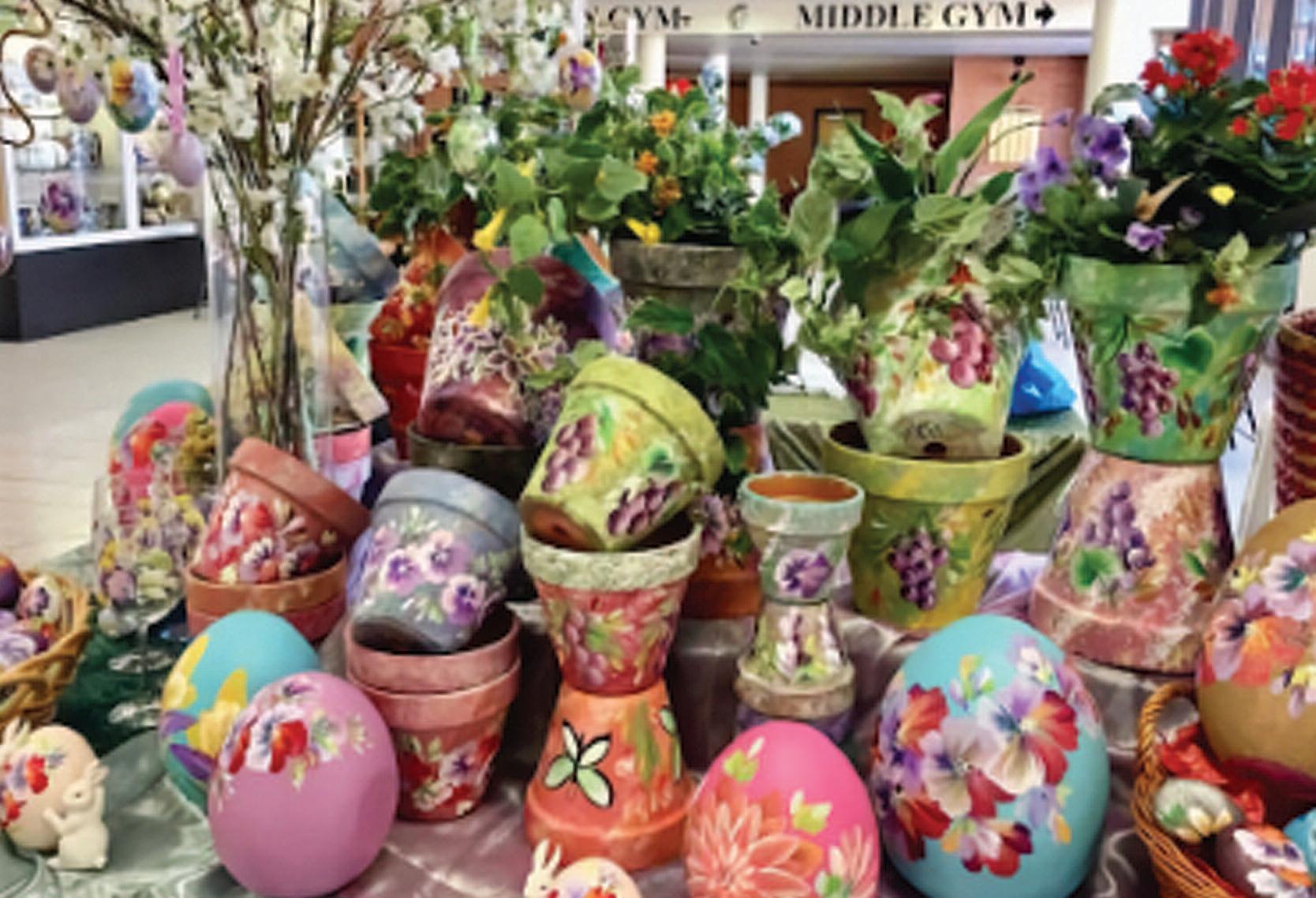 This yearʼs offerings include fine china, glassware, crystal, pottery, artwork, lamps, jewelry, linens, antique books, Easter items and a large selection of American Brilliant Period glass (1890–1910).