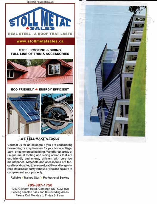 • New Patients Welcome • Emergency Medication Refills • Ostomy / Colostomy Supplies • Photo Printing • Passport Photos Walk-in clinic Friday morning at Fenelon Falls location. Fenelon Falls 53 Colborne St., (705) 887-2320 Bobcaygeon 101 East St., (Village Gate Plaza) (705) 738-2372 3 Great Locations to Serve Your Better www.mydrugstorenow.com www.mydrugstorenow.com Minden 101 Bobcaygeon Rd., (705) 286-1220 Your Health And Wellness Destination Live
