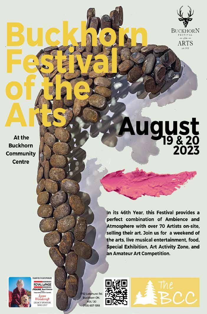The award-winning Buckhorn Festival of the Arts has a time-honoured reputation for curating a galleryquality fine art festival that appeals to a broad range of art enthusiasts and collectors. The Buckhorn Festival of the Arts runs at the Buckhorn Community Centre on Saturday, August 19 from 10am to 5pm and Sunday, August 20 from 10am to 4pm. You can find out more information at www.buckhornartfestival.ca.